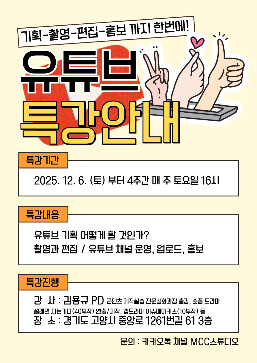 (유료) 유튜브 크리에이터 특강 (매주 토요일, 4주)
