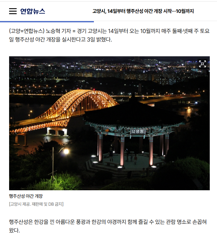 2026년 행주산성 야간개장이 오픈합니다 3월 14일부터 10월까지 멋진 야경을 감상..