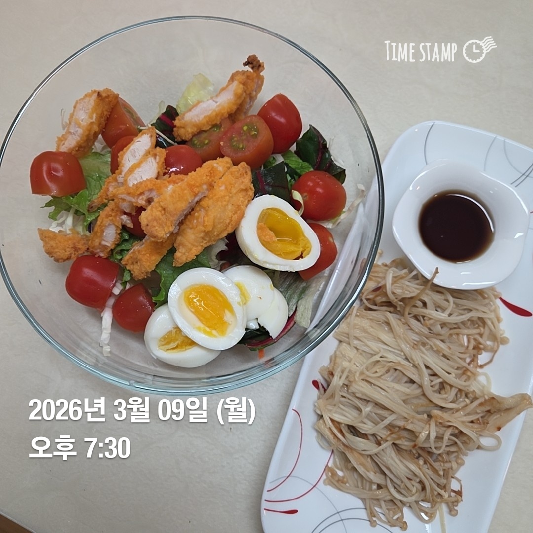 샐러드 토마도 계란 치킨텐더(에프돌림) 여기에 허니머스타드 소스 뿌려먹음 ..