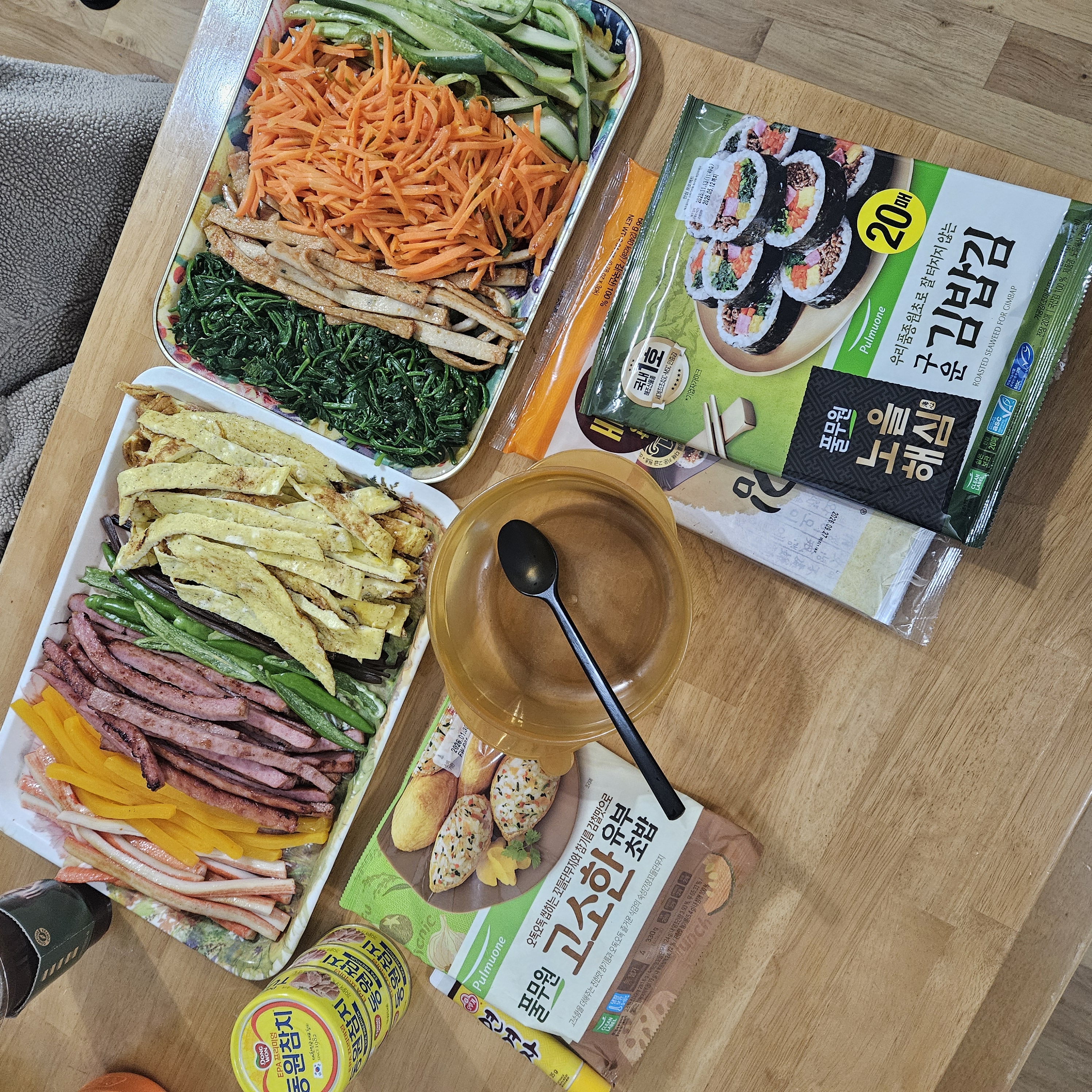 집 김밥 오랜만에 만들어요ㅎ 어제 로컬푸드 가서 재료 사다가 아까 저녁에 만..