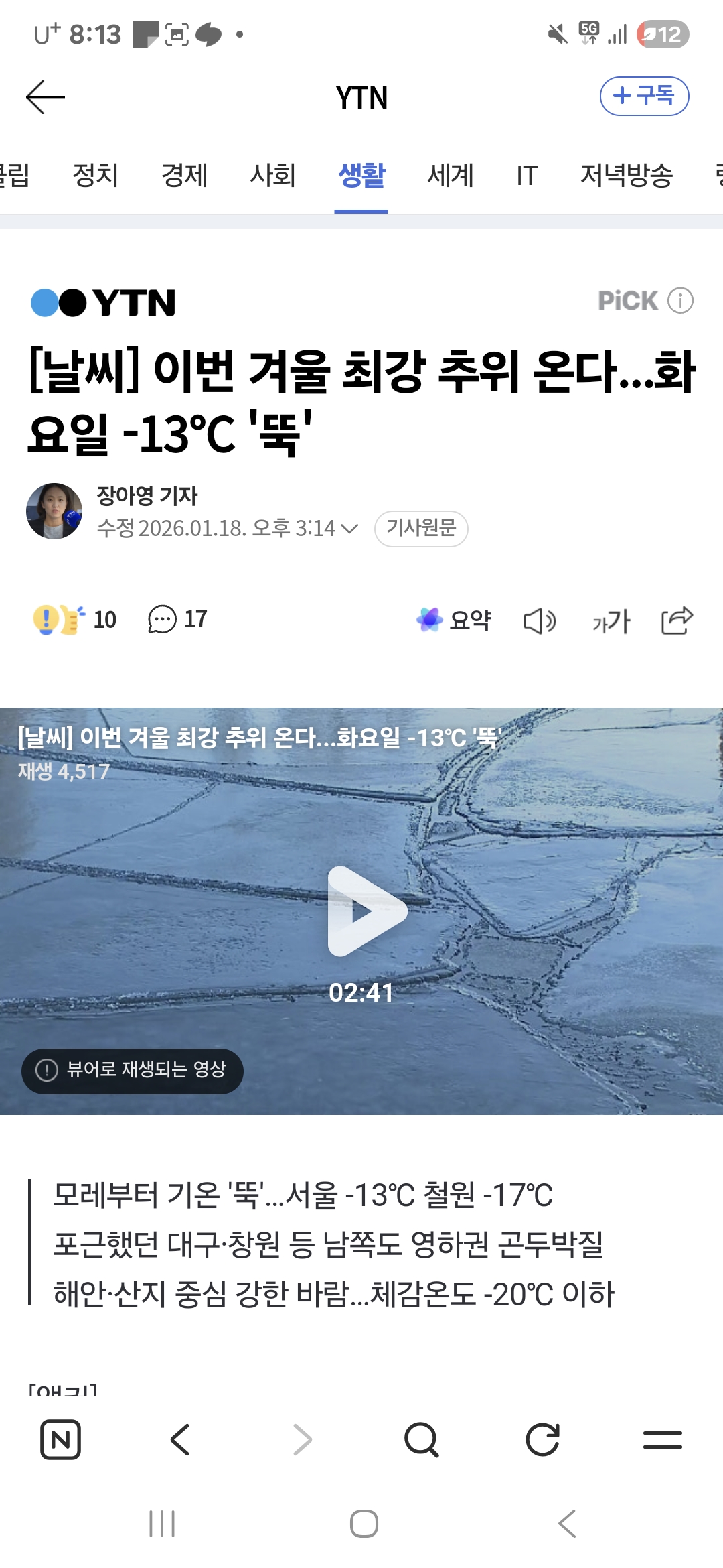 요 며칠 느므 추워서 검색하니 더 추워자다네요 oh~ no~~~~ ..