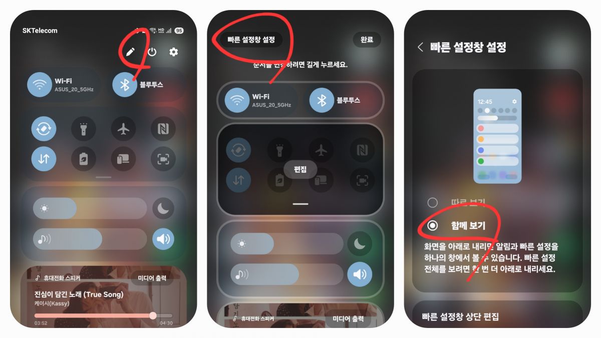 One UI 7.0으로 업그레이드 되고 빠른 설정창과 알림창이 분리가 되었어요. ..