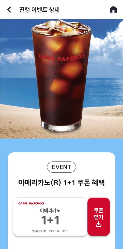 파스쿠치 가실때 아메리카노 1+1쿠폰 받으세요.