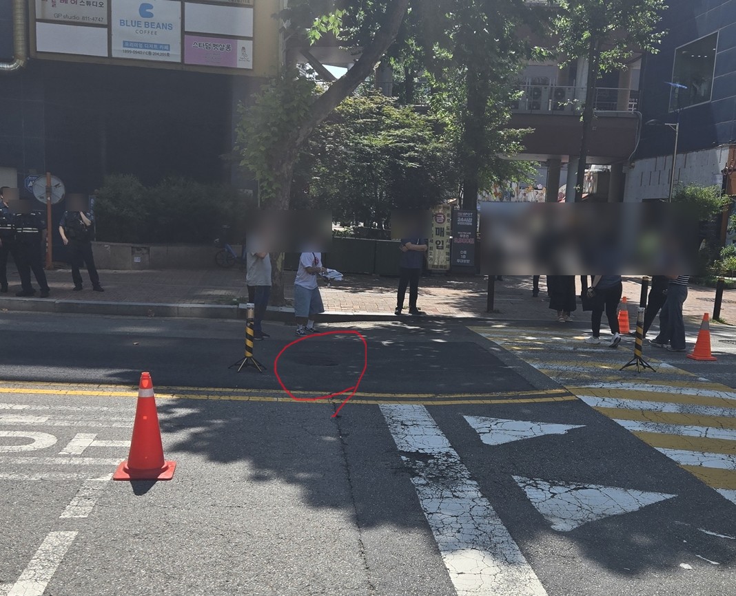 라페스타 E동과 C동 사이쯤 도로에 땅꺼짐 발생으로 차량 통제되고 있어요.