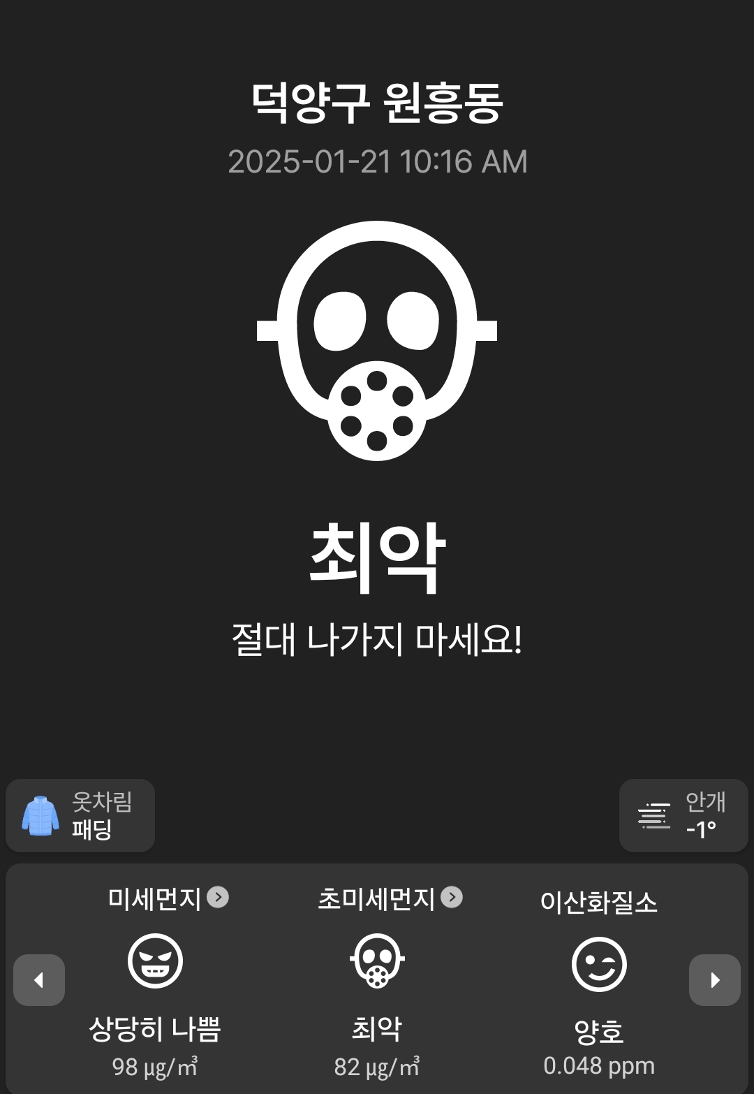 어제 오늘 미세먼지 최악으뢰 나오네요 하늘을 보면 파란하늘이 이린 회색하늘이 보여요 ..