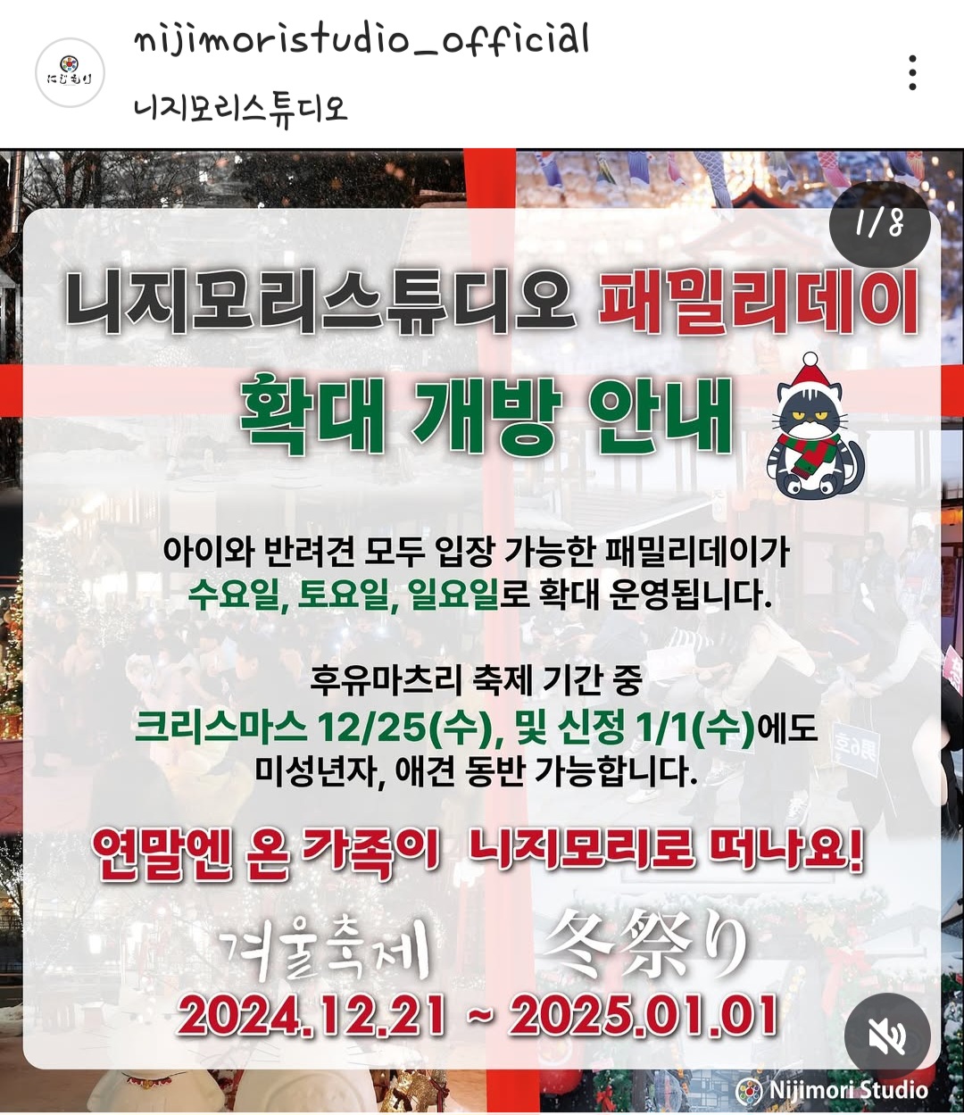 니지모리스튜디오 수.토.일 어린이도 입장가능하대요^^
