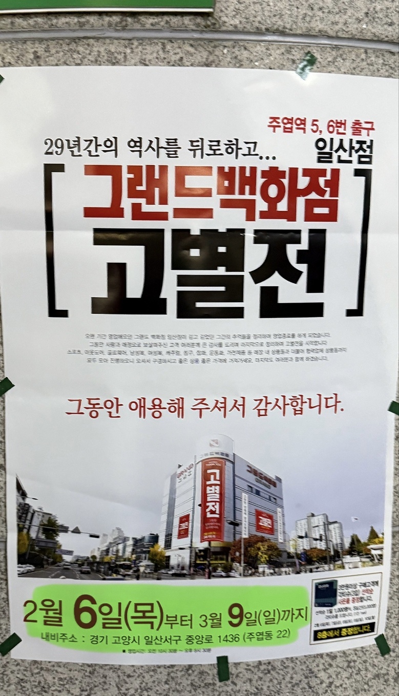 일산의 오랜 랜드마크였던 그랜드 백화점이 드디어 문을 닫습니다. 저는 그랜드 백화점이..