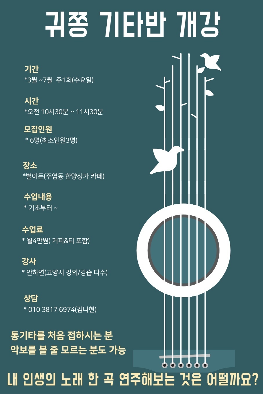 (유료) 귀쫑 기타반 개강 (3월~7월/매주 수요일)