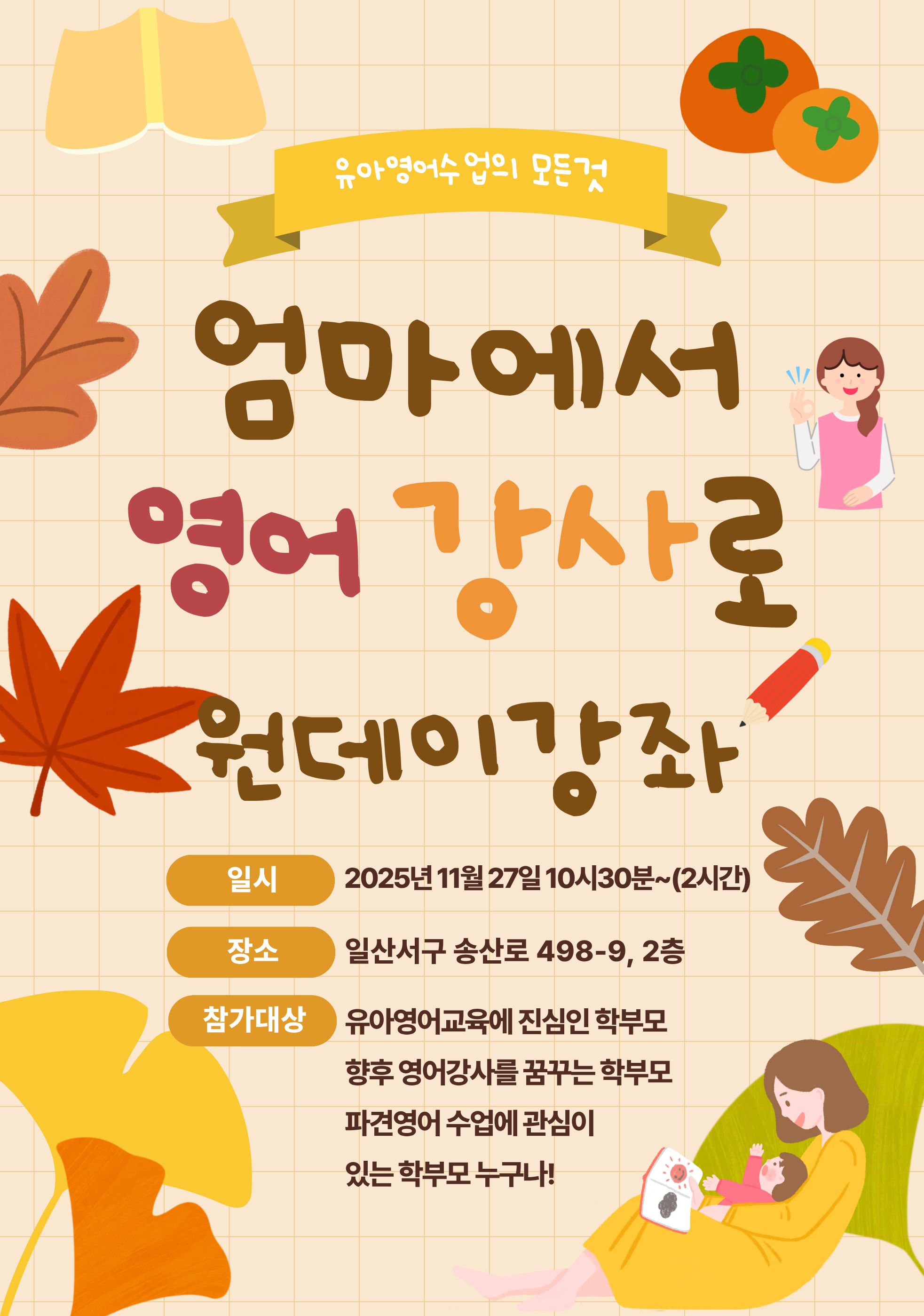 - 영어전공을 했지만 결혼,임신,출산 등으로 쉬고 있는 학부모